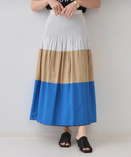 ・表側はチェック柄で裏側はストライプ柄(252カラー)と、表側はブロック配色で裏側は無地(501カラー)で、両面リバーシブル着用可能なフレアスカート。
