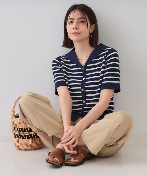 ・トレンドデザインのセーラーカラーが鮮度のある、ボーダー柄のサマーニット。