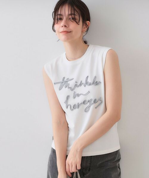 ラメテープ使いのロゴモチーフがポイントのノースリーブニット