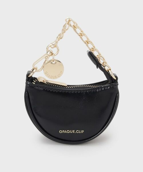・三日月型のムーンシルエットが特徴で、ゴールドのブランドロゴがさりげないデザインポイントです。