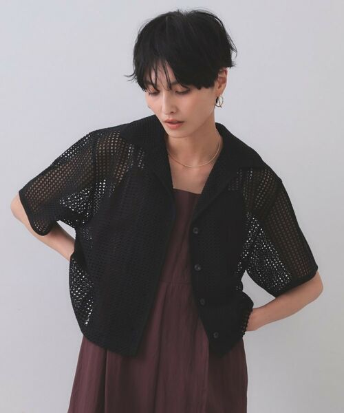 ・クラフト感もあるメッシュ素材を開襟シャツに仕上げました。