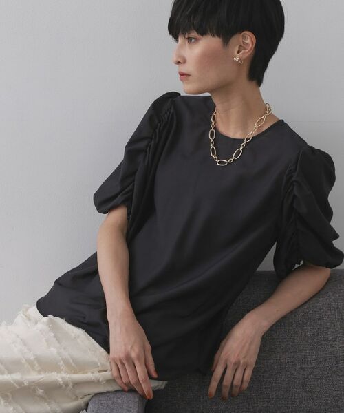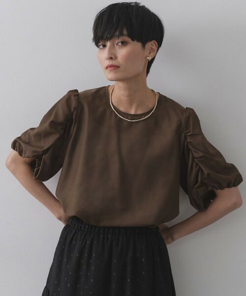 ボリューム感のあるギャザースリーブをポイントにしたシアーブラウス