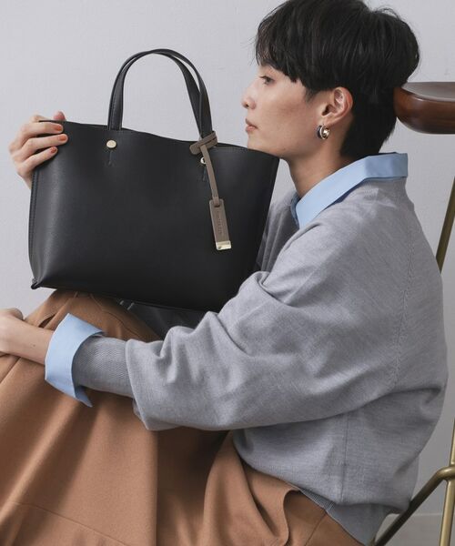 通勤通学のキレイめスタイリングに合わせやすいスッキリしたデザインのミドルサイズトートバッグ。