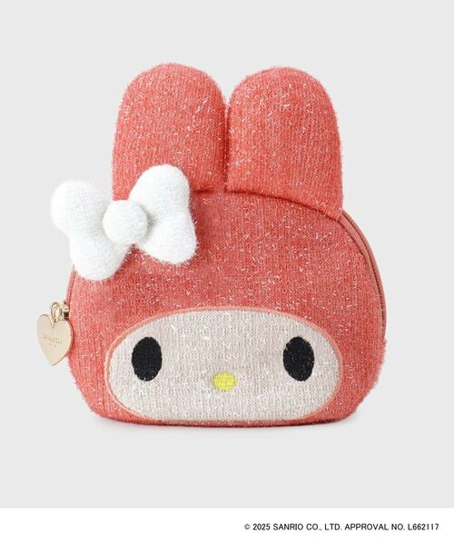 マイメロディのお顔を立体的に表現したフェイス型ポーチ。