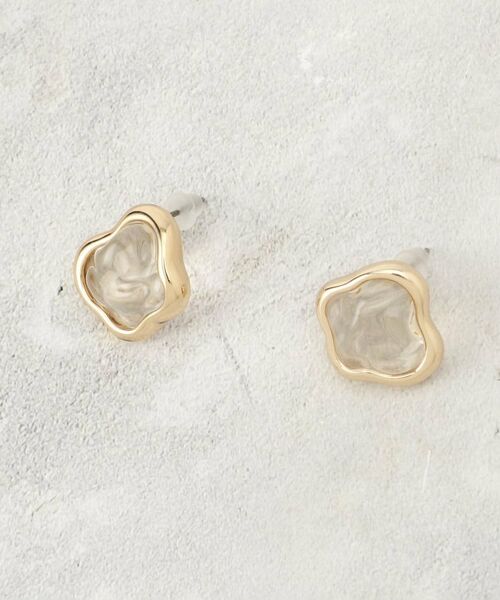 ニュアンス感のあるカーブを描くメタルフレームに、カラー樹脂を掛け合わせたピアス
