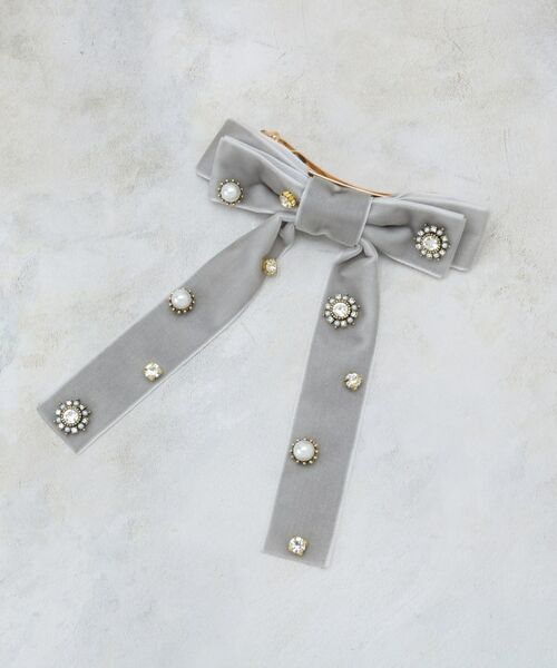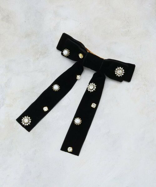 ベロア素材とビジューを掛け合わせたリボン型バレッタ
