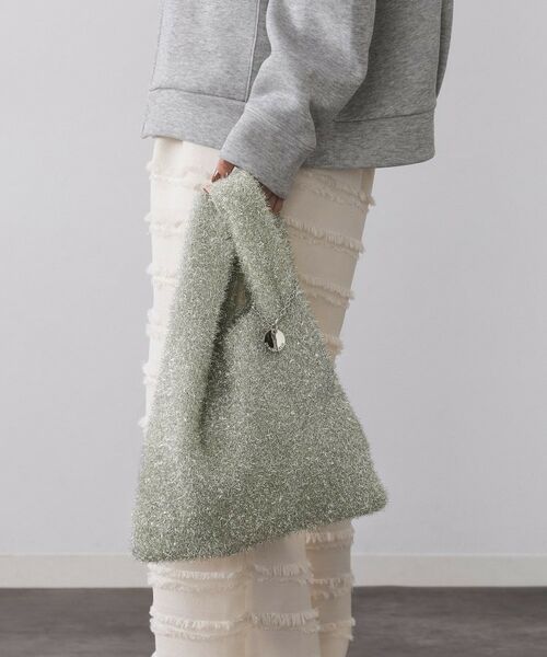 トレンドのラメ系素材を使用したコンパクトなニットバッグ。