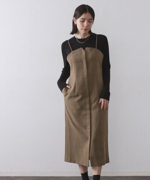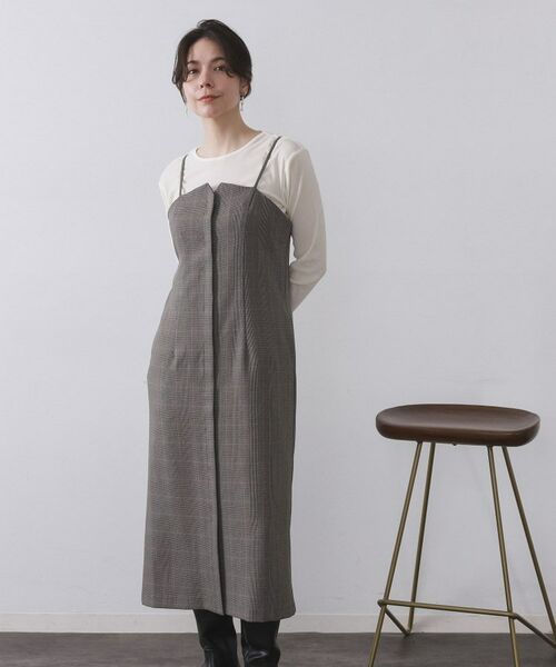 ・トレンドのビスチェのような、ボタン開きデザインのキャミワンピース