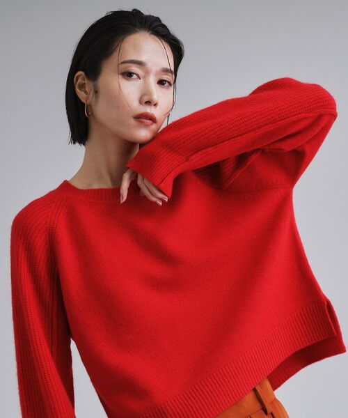・センシュアルなサテンスカートなど、ニットと素材感の違うボトムスとのスタイリングもおすすめです。
