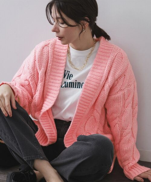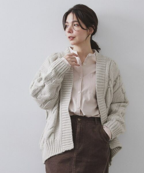 ・立体感のある編み柄が特徴のローゲージケーブル編みが目を惹くカーディガン。