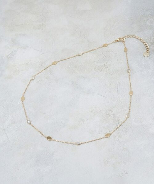 細身のメタルチェーンに小粒ビジューをさりげなく配した、繊細で華奢なネックレス。