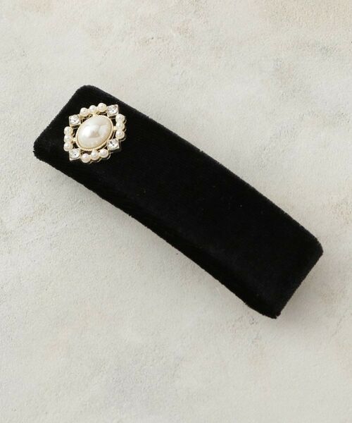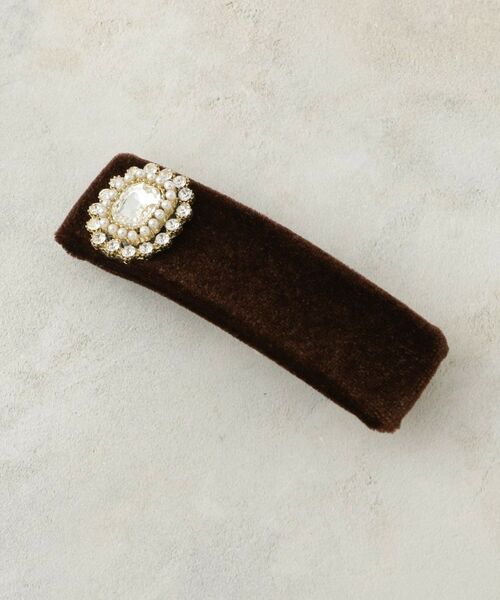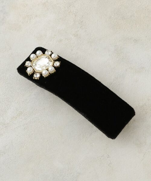 光沢のあるベロアを艶やかに仕立てたバレッタに、小粒ビジューを配した愛らしいフォルム。