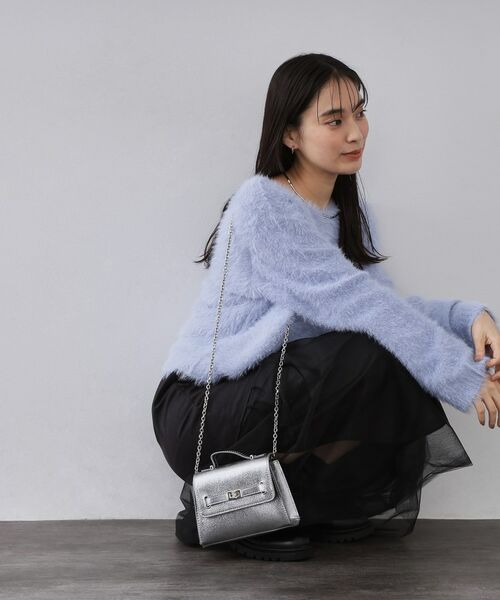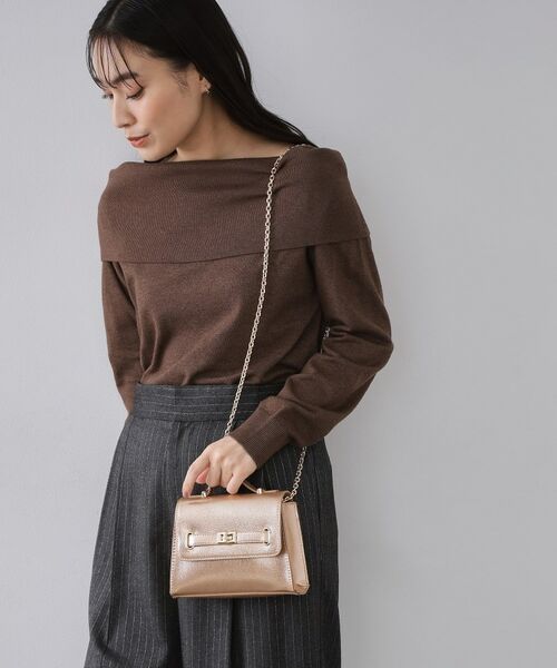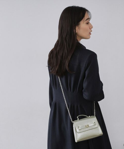 シンプルなスタイリングのポイントにもなるスクエアデザインミニショルダー。