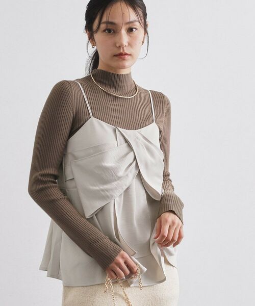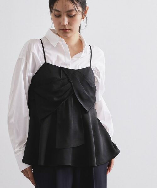 ・フロントにアシンメトリーなリボンデザインをあしらった。ビスチェ風デザインのキャミブラウス。