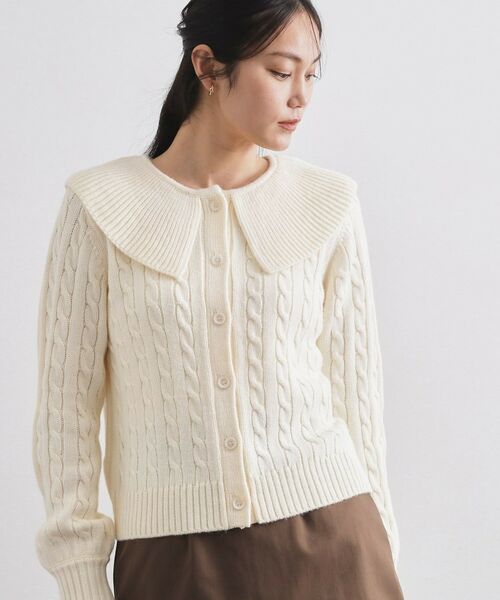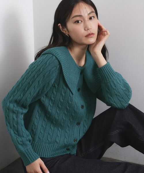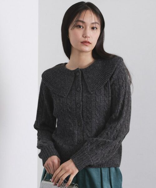 ケーブル編みにビッグ襟がポイントのミドルゲージニット