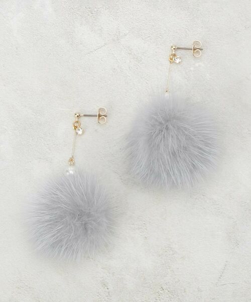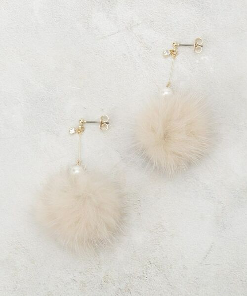 ミンクファーが揺れてコーディネートのワンポイントになるピアス