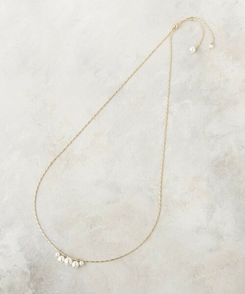 スライド式の長さ調節でチョーカーにもロングにも変化する、都会的で上品な顔立ちのネックレスです。