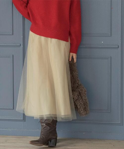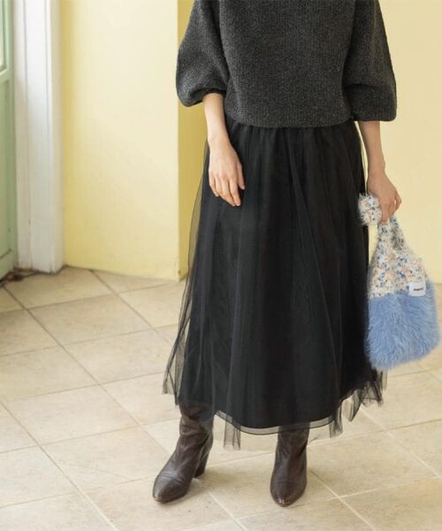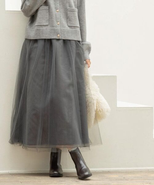 ・繊細なチュールとオーガンジーに裏地を重ねた、3素材の重なりが美しいチュールギャザースカート。