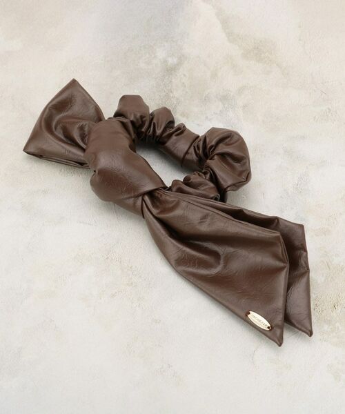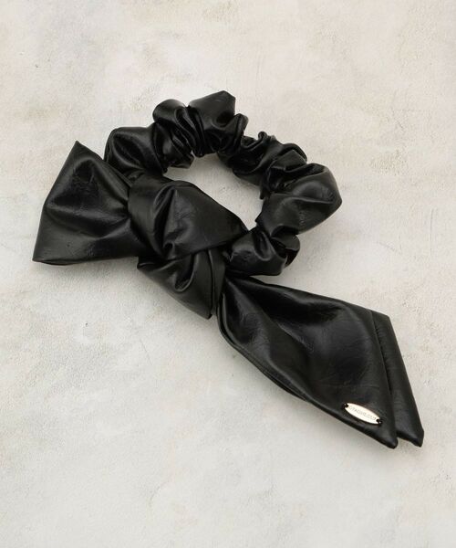 トレンド感のあるレザー調のリボンモチーフシュシュ