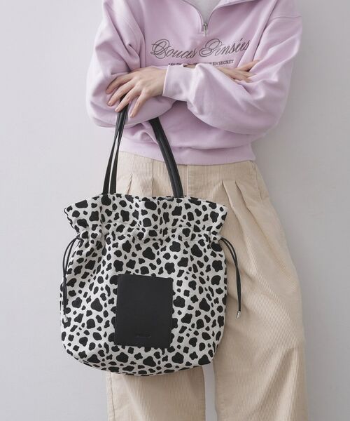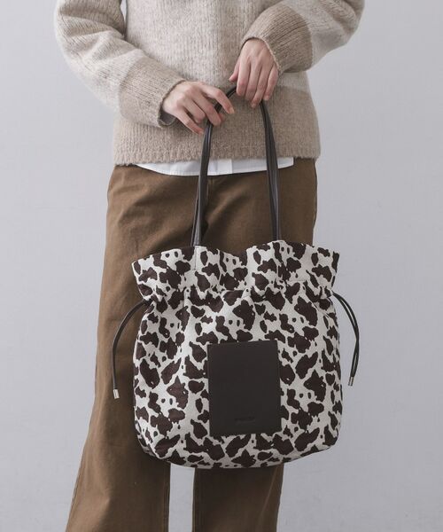 #243ブラウン系:カウ柄ジャカード素材+合皮ポケット