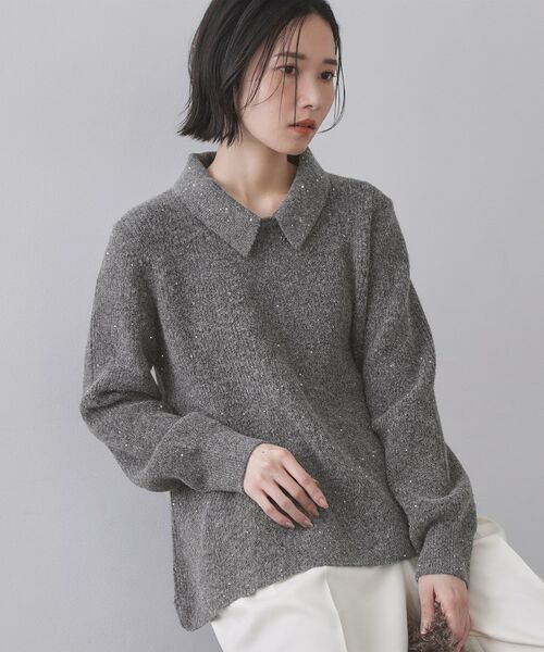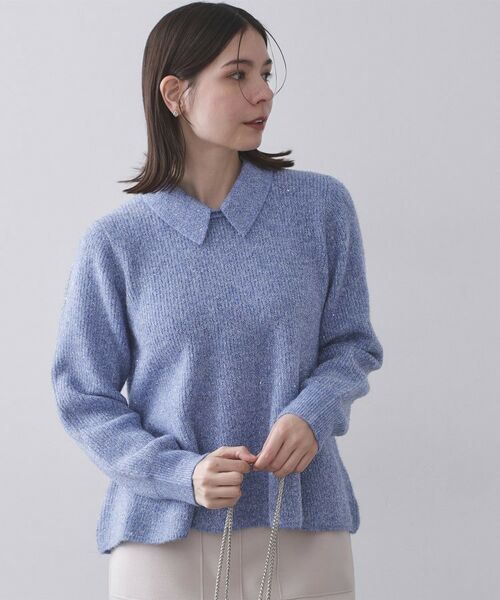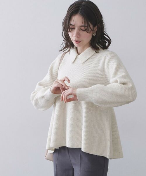 スパンコールラメ衿2WAYペプラムニット【洗濯機OK】
