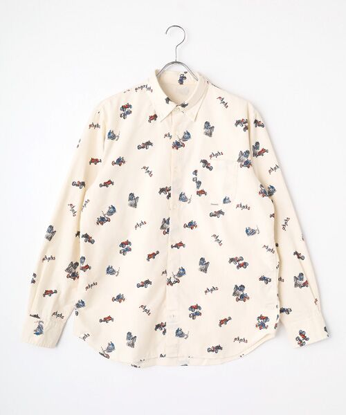 オート捺染にてクラシックカーモチーフのプリントを施した、秋冬に最適なカジュアルシャツ。