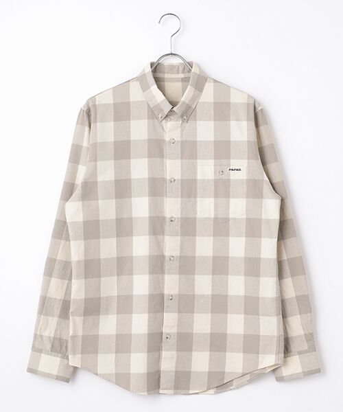 さりげないジャカードの手描きPAPASロゴがポイントのブロックチェックシャツ。モノトーンでベーシックな2色と大胆な8色使いのマルチカラー、ぜひコーディネートに取り入れてみてください。