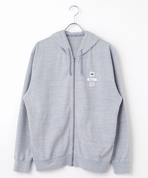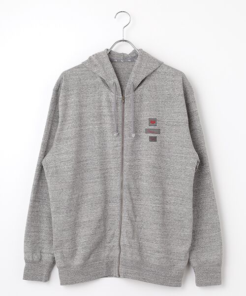 後ろ身頃のロゴ刺繍がポイントのパーカー。糸の紡績機、生地の編み機に拘り、昔ながらの機械をあえて使用して編み上げた天竺素材、こだわりの一着です。