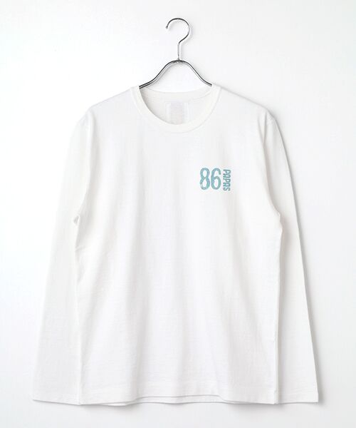 パパス創業年の1986年を表すプリントを胸にあしらったTシャツ。糸の紡績機、生地の編み機に拘り、昔ながらの機械をあえて使用して編み上げた天竺素材、こだわりの一着です。
