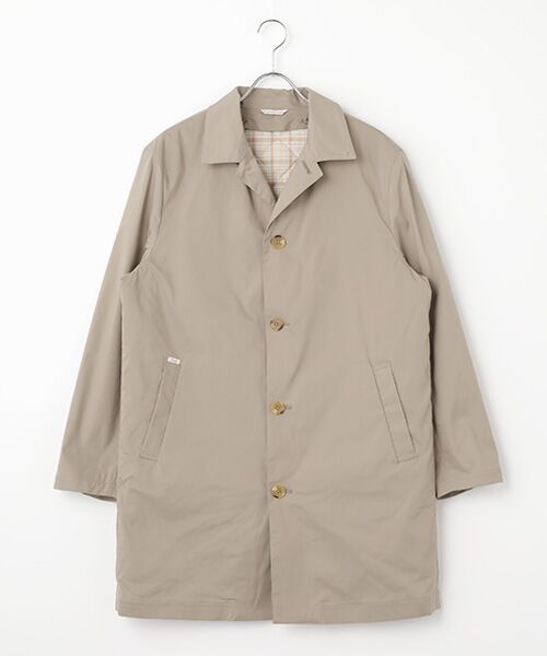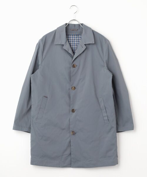 生地は、タテ糸に100dのリサイクルポリエステル、ヨコ糸に75dのマイクロファイバーを使用したマットタイプのタフタです。ハイマルチのマイクロファイバーを使用することで、立体感あるメモリータッチとナチュラルストレッチ性、マットな質感が特徴です。仕上げ加工ではダントツ撥水を施しています。水滴の接触面積が少なく、水滴が転がりやすいので抜群の水切れです。