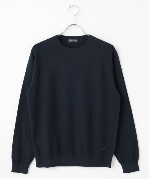 しっとりとした肌触りと産毛のような柔らかさ、ナチュラルなムラ感とネップ感が特徴のクルーネックセーター。