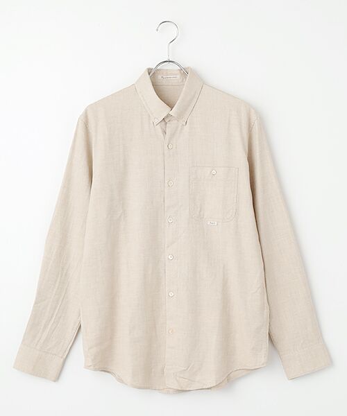 ウールのぬくもり、リネンの素朴な風合い、コットンのやさしい肌ざわりといった3つの天然素材が調和したシャツ。自然に包まれるような着心地を感じていただけます。