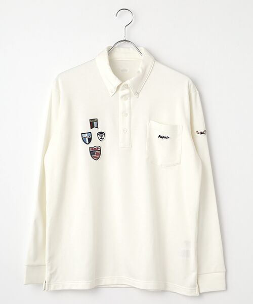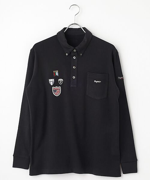 ※台衿付きBD長袖ポロシャツ 前明き4つボタン