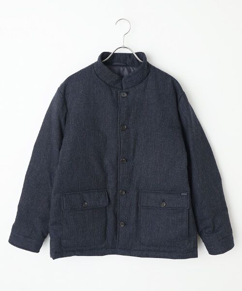ピンチェックが上品なダウンジャケット。ダウンですがカジュアルになりすぎず、コーディネートに取り入れやすい一着です。