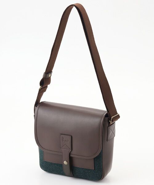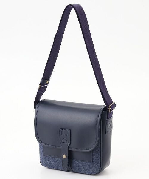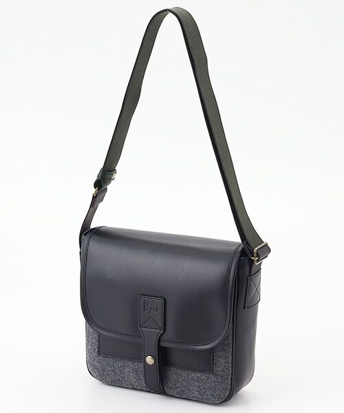 メルトンウール×レザーのショルダーバッグ。