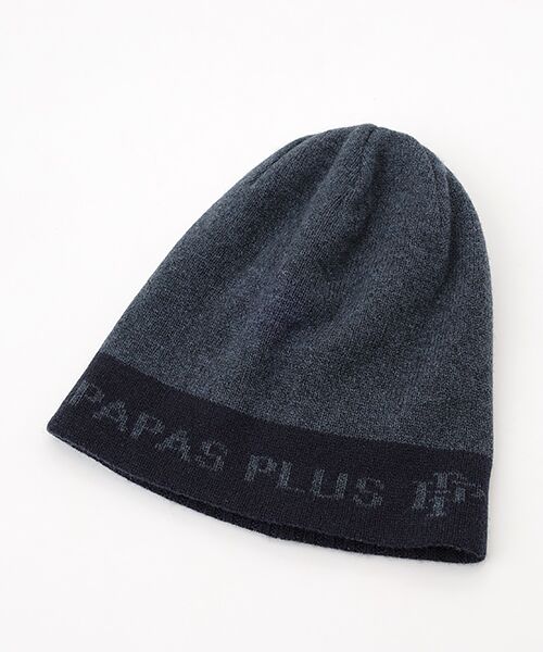 カシミヤ100%のニットキャップ。落ち着いた色合いのPAPAS PLUSロゴがポイントです。※ロゴジャガード カシミヤニットキャップ※表:袋ジャガード 裏:リブ※12G