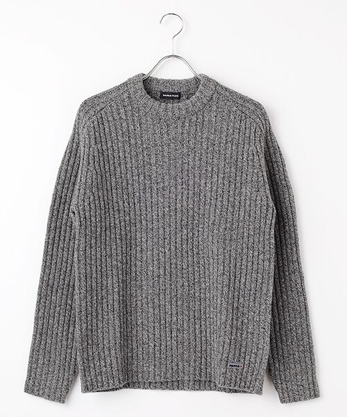 メランジ感と奥行きのある色合いが特徴の、シンプルで取り入れやすいリブセーター。裾のロゴワッペンがさりげないワンポイントです。生地は、オーストラリア南部クーマ地区で育てられた仔羊(ラム)から採毛された平均繊度20.0μの高級紡毛素材です。白度と光沢に優れ、ソフトでしなやか、弾力性と暖かみに富んだ高品質羊毛を使用しています。繊維の傷みや風合いのバラつきを最小限に抑えるため、原料で染色し国内最新機器の揃う工場にて紡績しています。今回はこの糸を3色撚糸する事により、メランジ感と奥行きのある色合いを表現しています。※3色撚糸のため、杢が塊のように見えたり、筋状に一色だけ目立ってしまう可能性があります。 ※5Gクルーネックリブセーター※前身頃左裾ワッペン1個