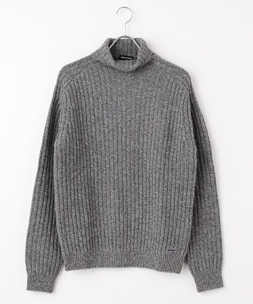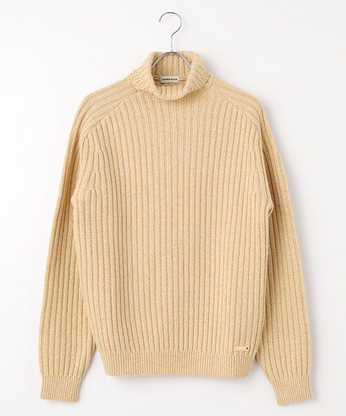 メランジ感と奥行きのある色合いが特徴の、シンプルで取り入れやすいタートルネックリブセーター。裾のロゴワッペンがさりげないワンポイントです。