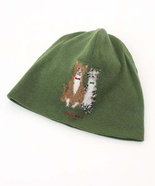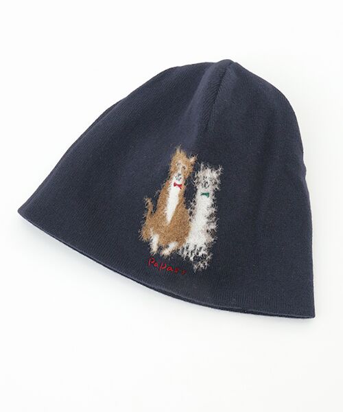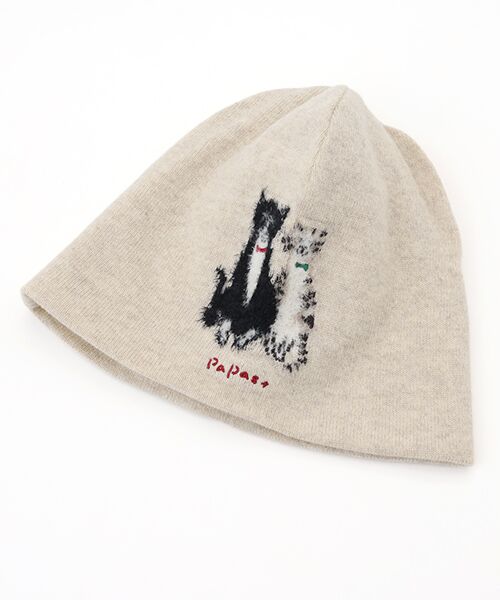 かわいらしいネコモチーフをあしらったニットキャップ。上質で希少価値のある『エクストラファインラムウール』を使用しています。オーストラリア ジロン地方で産出されるメリノ種の仔羊から生後6か月以内に採取した毛『エクストラファインラムウール』、その中から厳選した18.5μ以下の細い毛を使用しています。とても繊細でソフトな風合いが特徴です。細番手ではありますが紡毛糸のために膨らみが良く、とても軽くて保温性に優れた素材になっています。この素材をベースに毛足の長いナイロン糸で柄を形成し、柔らかな猫の毛の質感を表現しています。※ネコインターシャ入り※12G 天竺編み※丈:21㎝ 巾:25㎝※フリーサイズ