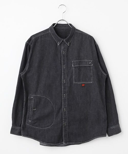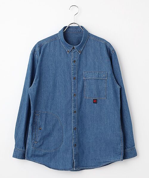 ライトデニムのオーバーサイズシャツ。春先にさっと羽織ってもさわやかにお召しいただける一枚です。ポケットの配置や、後ろヨークの刺繍がポイント。