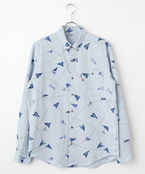 オーガニックコットンを使用した、サッカー地のマリン柄プリントシャツ。