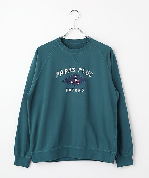 柔らかいタッチのロゴとペンギンの刺繍をあしらった、ミニ裏毛のクルーネックトレーナー。