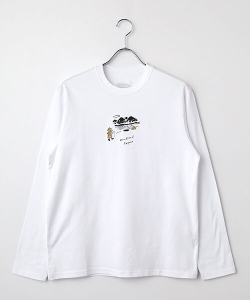 キャンプをする犬を柔らかいタッチで描いたプリントTシャツ。