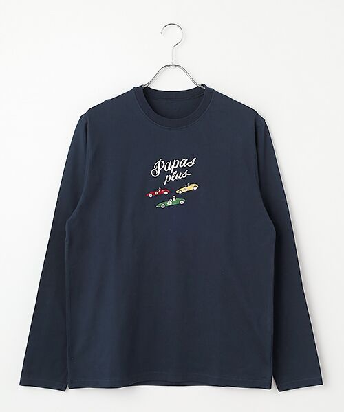 胸にロゴとペンギンの刺繍をあしらった、クルーネックTシャツ。