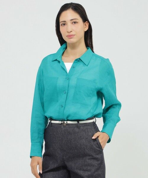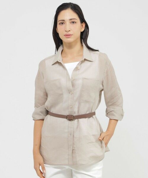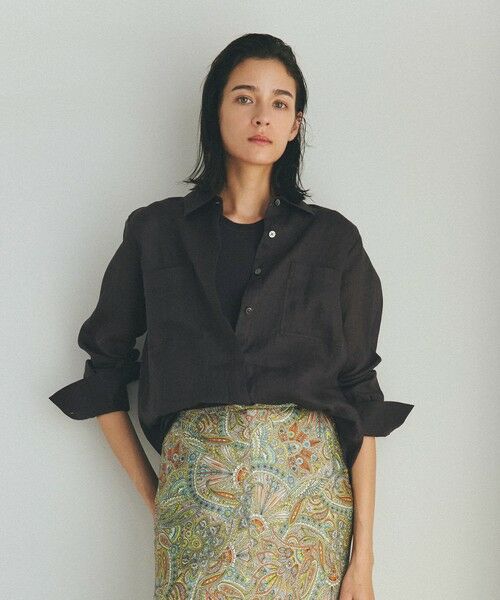 <シアー感のある上質素材のシャツブラウス>