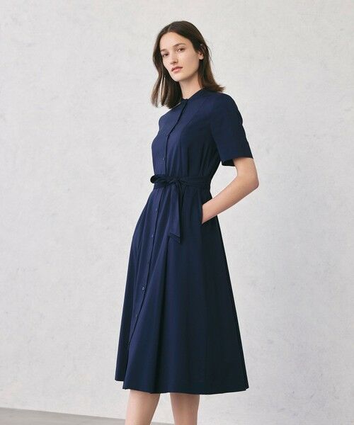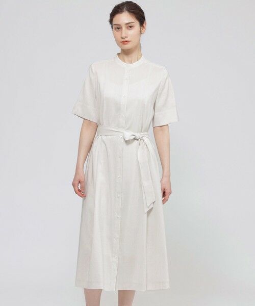 バンドカラーで襟元をすっきりとさせたワンピースです。
