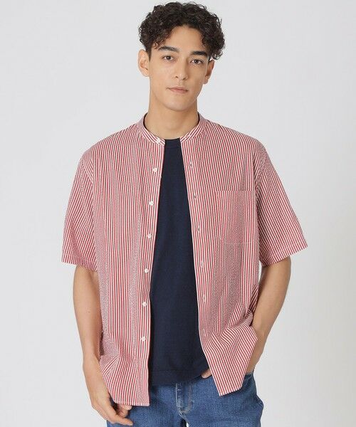2025 Midsummer item Available2025年盛夏シーズンの新作半袖シャツが登場。シアサッカー調の凹凸感がある綿の生地を使用した半袖シャツです。ソフトな肌触りによる着心地の良さが特徴で、肌離れも良いため、夏の時期におすすめのシャツです。デザインはバンドカラー型で、通常の襟よりも顔周りがすっきりし、涼しげな印象です。程よくゆとりのあるリラックスフィットなので、Tシャツ等の羽織としても活躍します。