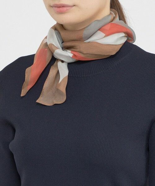 <繊細なシルクがエレガントなプリントスカーフ>ご自宅で手洗いができるウォッシャブルシルクを使用した素材です。程良いシアー感のある上品な素材で、重ねると陰影のあるスタイリングが完成します。動きのあるジオメトリックパターンをエレガントな配色で仕上げました。コーディネートにプラスするだけでスタイリングに華やかさが加わります。ビジネスシーンからデイリー用途まで幅広く活躍するアイテムです。※この商品はサンプルでの撮影を行っています。実際の商品とイメージ、仕様が異なる場合がございます。