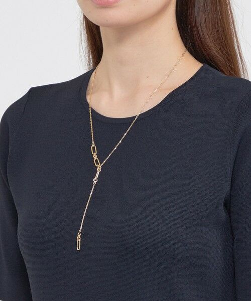<繊細なチェーンが上品なアシンメトリーネックレス>繊細なチェーンをアシンメトリーに配したネックレスです。Y字タイプで首元をすっきりと見せるデザインに仕上げました。シンプルな衣服に合わせても上品かつ華やかに演出します。ビジネスシーンからデイリーカジュアルまでオンオフ問わず活躍するアイテムです。パールネックレスや存在感のあるネックレスと合わせたレイヤードスタイルもおすすめです。※この商品はサンプルでの撮影を行っています。実際の商品とイメージ、仕様が異なる場合がございます。