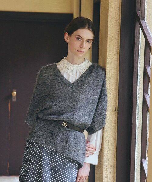 襟付きのブラウスやワンピースに合わせたスタイリングもおすすめです。